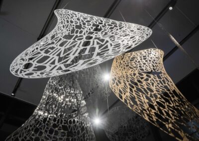 The sculpture was executed with laser cuts of lacquered metal sheets, with motifs of phrases that the advertising agency invited the audience to express about their dreams, honoring the brand's claim "build your dreams", what are your dreams?