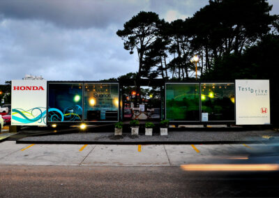 Se instalaron en el área de parking anexo al Punta shopping y se acondicionaron los interiores con gráfica, muebles de diseño e iluminación con alta visibilidad para horario nocturno.