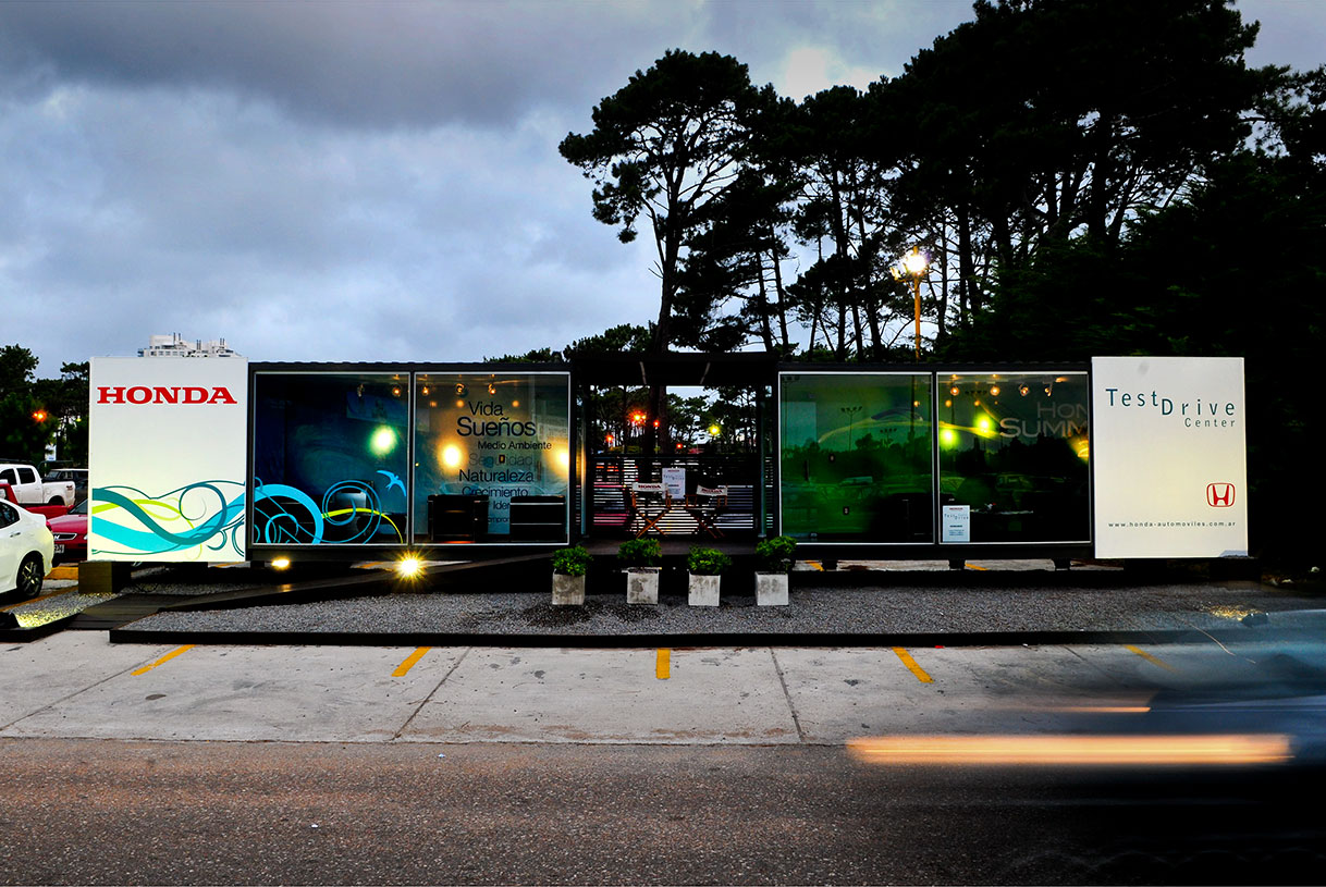 Instalación de dos contenedores a modo de invitación para experiencia Test Drive Center de la marca, para veraneantes del balneario.
